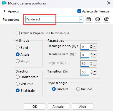 Effets - Effets d'image - Mosaïque sans jointure par défaut