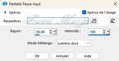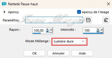 Réglage - Netteté - Passe-haut