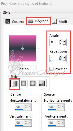 Préparer un dégradé linéaire avec les paramètres suivants :